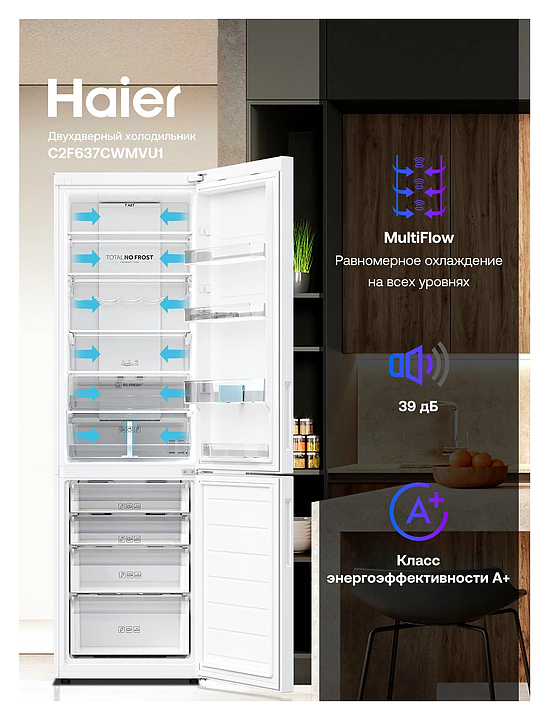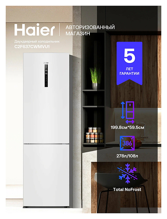 Холодильник Haier C2F637CWMVU1 386 л 595х672х1998 мм, белый