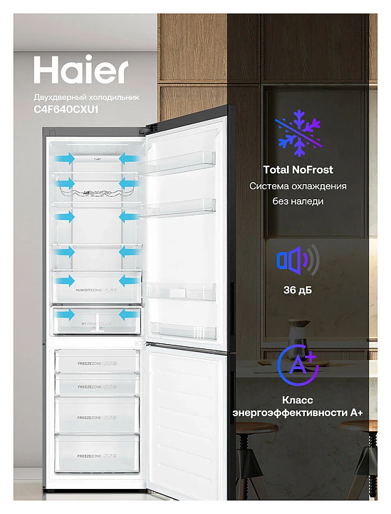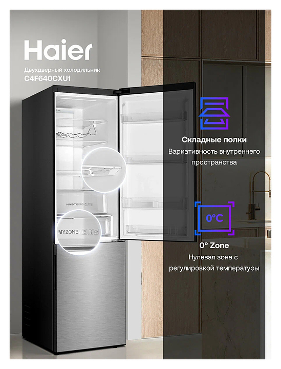 Холодильник Haier C4F640CXU1 400 л 595х682х2000 мм, нержавеющая сталь