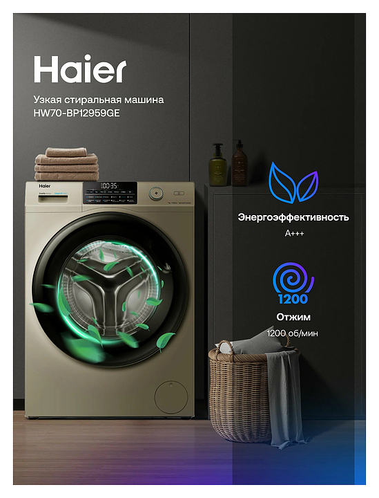 Стиральная машина Haier HW70-BP12959GE 7 кг 1200 об/мин золото, черный