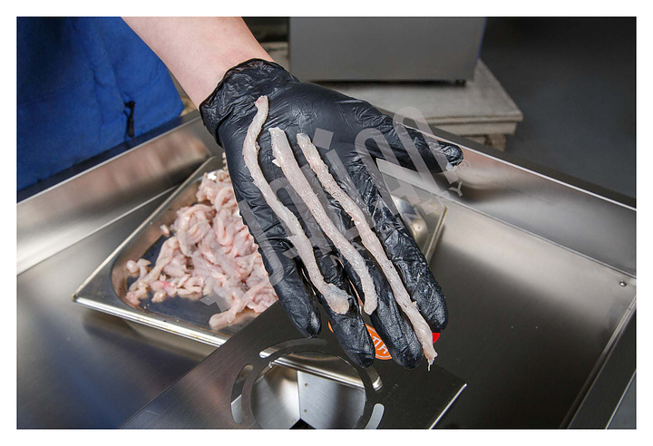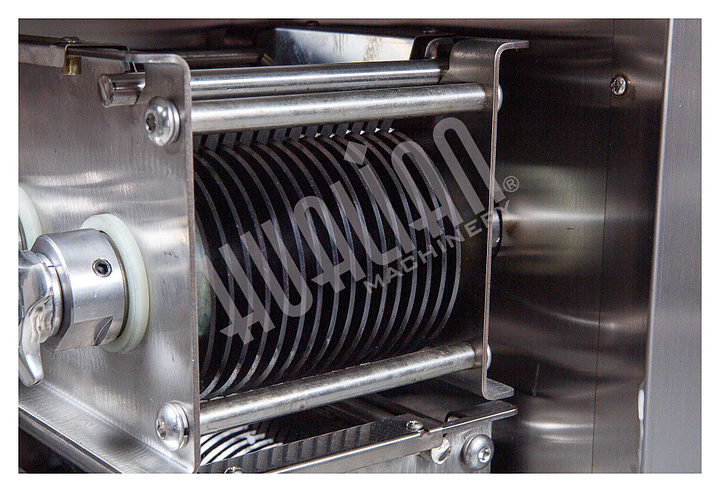 Слайсер Hualian MC-TS800 предназначен для нарезки на брусочки различного сырья, в первую очередь – мяса. Толщина ломтика регулируется путем замены комплекта ножей. Слайсер является отличным решением для крупных предприятий общественного питания, кулинарий, собственных производств супермаркетов и гипермаркетов, а также мясоперерабатывающих цехов. Аппарат оснащен долговечными качественными ножами. Лезвия ножей имеют специальную заточку, обеспечивающую аккуратный, ровный срез. Двойная конструкция ножа позволяет нарезать мясо на ломтики равномерной толщины. Для удобства перемещения в корпус встроены мобильные колеса. Корпус аппарата выполнен из утолщенной нержавеющей стали с матовой обработкой поверхности, что обеспечивает оборудованию прекрасный внешний вид и улучшает гигиену. Внимание! В базовой комплектации модель настроена на нарезку толщиной 5 мм. Под заказ поставляется оборудование с разной толщиной нарезки до 12 мм включительно. В комплект поставки входит 2 набора ножей. По запросу возможна доукомплектация аппарата дополнительным количеством ножей. Особенности: