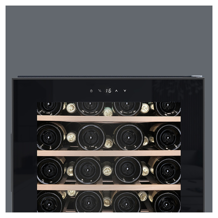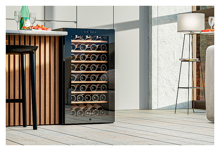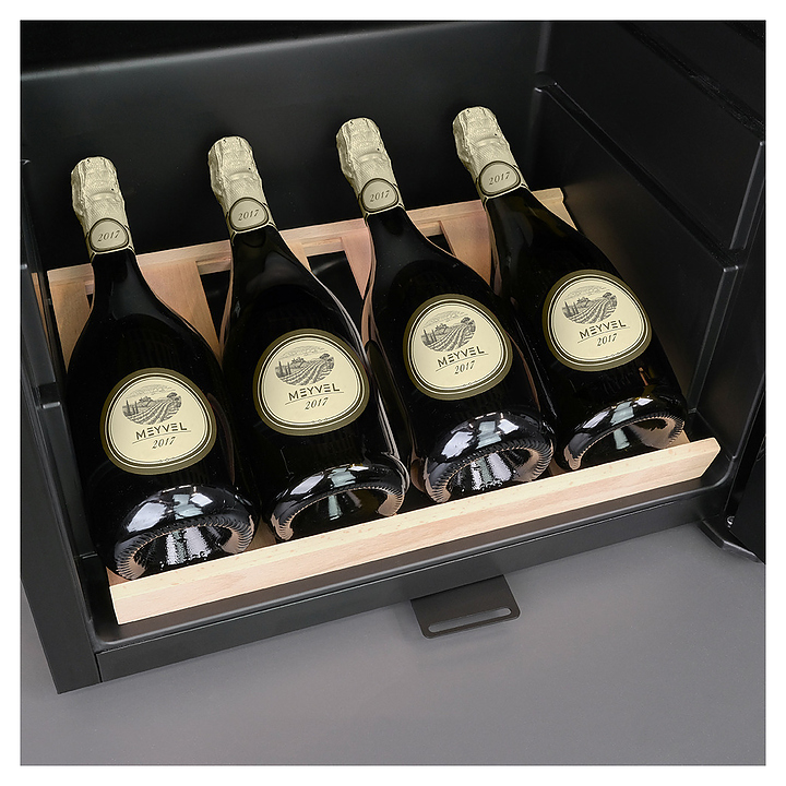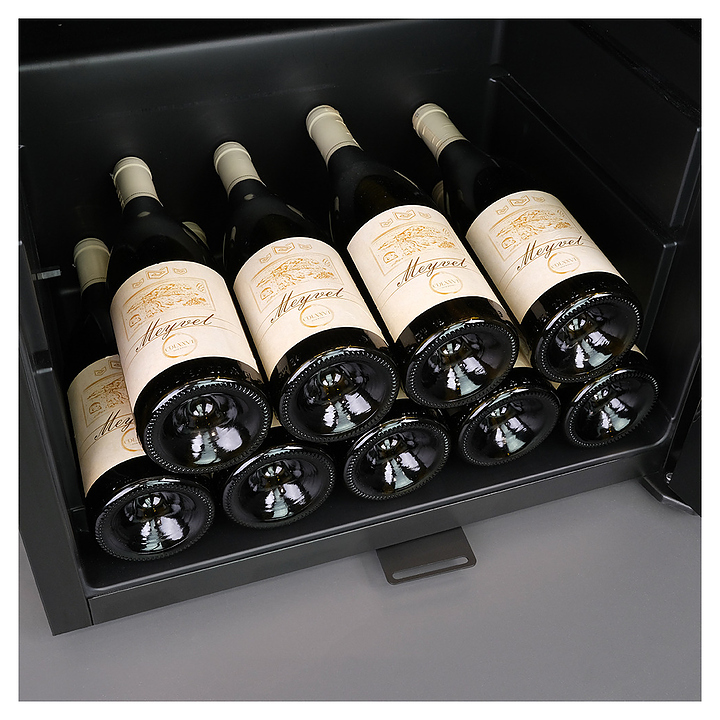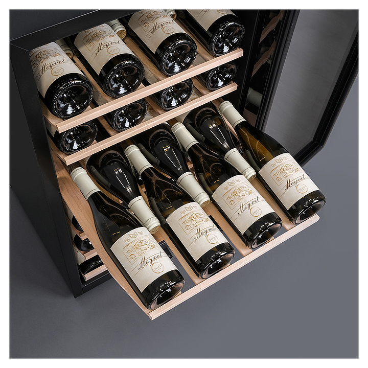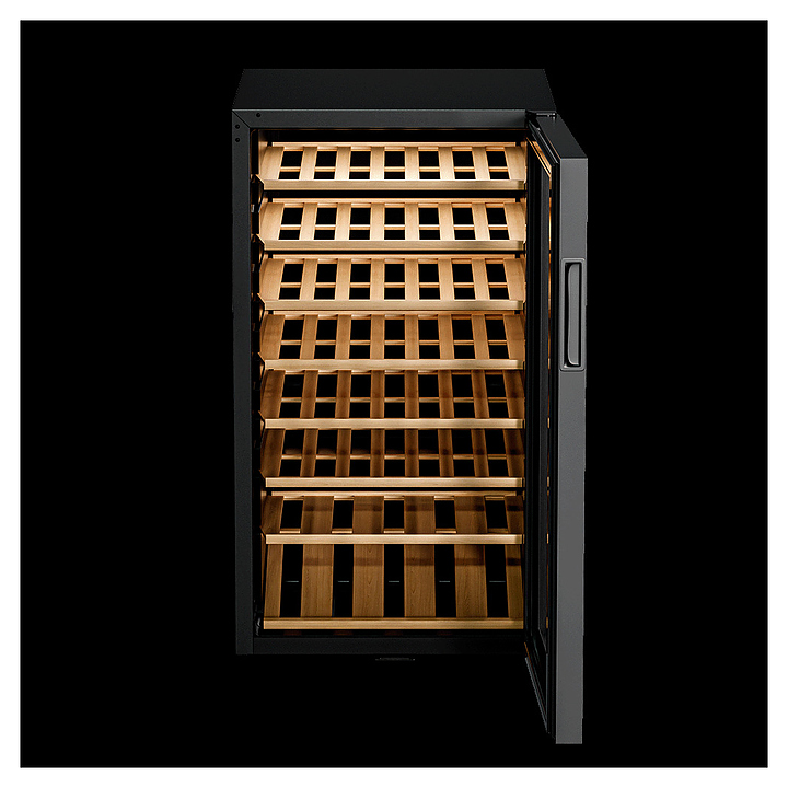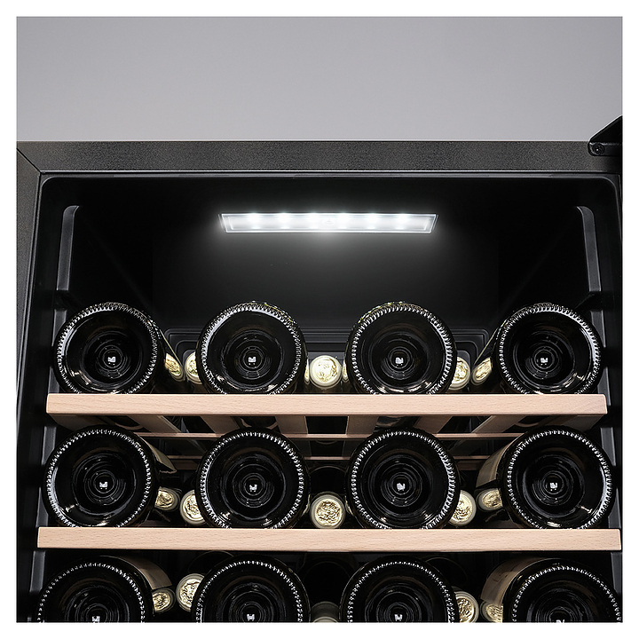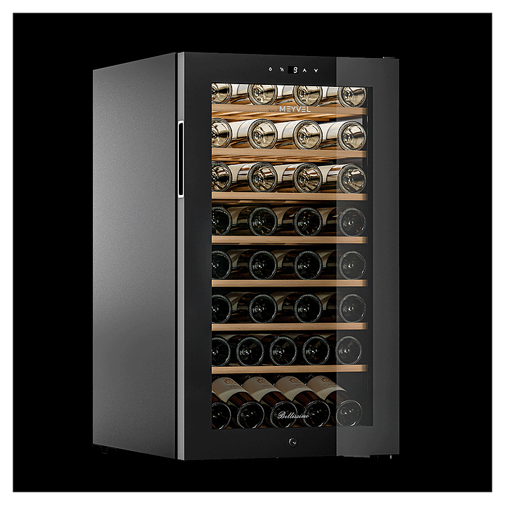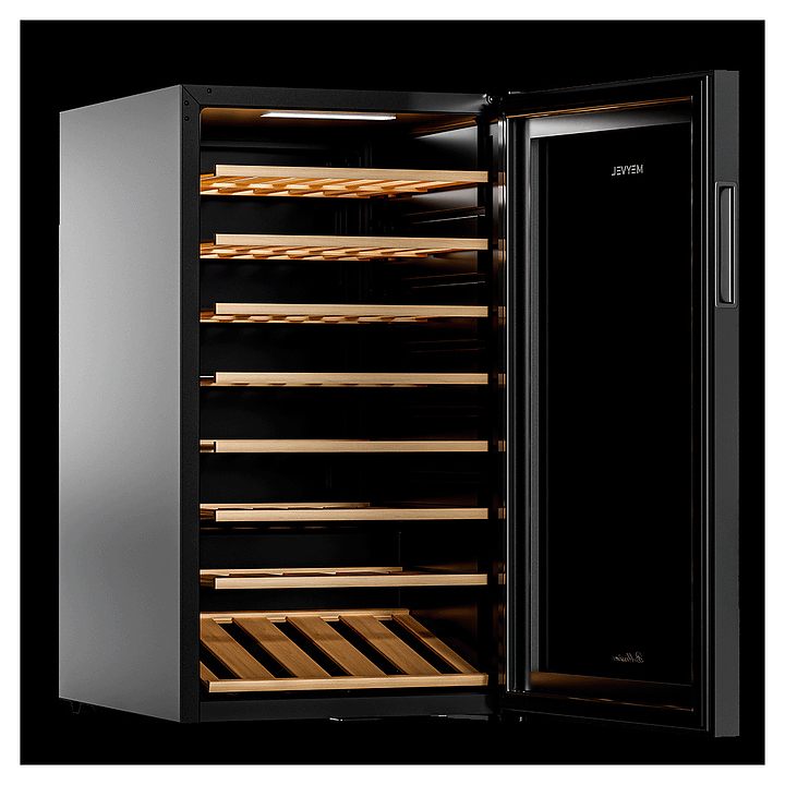 Винный шкаф MEYVEL MV52-KBF1 предназначен для демонстрации, хранения и создания оптимальных условий для сохранения всех вкусовых свойств вина в бутылках на предприятиях общественного питания, торговли, в барах, ресторанах, специализированных магазинах, частных домах или квартирах. Модель оснащена сенсорной панелью управления, внутренним освещением и ручкой. Угольный фильтр очищает воздух внутри шкафа от посторонних запахов. Корпус, рамка двери и ручка выполнены из стали, дверь - из закаленного стекла с УФ-фильтром, полки - из дерева. Особенности: