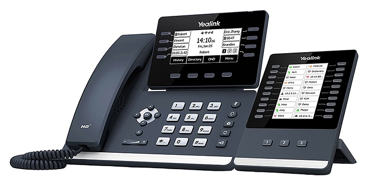 Настольный IP-телефон Yealink SIP-T53 предназначен для организации связи на предприятиях малого и среднего бизнеса. Прибор отличается четкими передачей и воспроизведением звука высокого качества, удобный пользовательский интерфейс упрощает эксплуатацию, возможность подключения дополнительных беспроводных DECT-устройств расширяет функционал и обеспечивает гибкость коммуникации. Модель оснащена проводной трубкой и информативным монохромным жидкокристаллическим дисплеем. Корпусы базы и трубки выполнены из пластика с поверхностью серого оттенка.