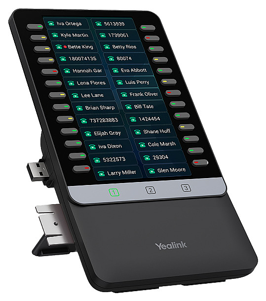 Модуль Yealink EXP55 используется совместно с IP-телефонами серий Т7 и T8 для расширения возможностей управления с помощью программируемых DSS (Direct Station Selection) клавиш при организации связи на предприятиях малого и среднего бизнеса. Модель оснащена цветным жидкокристаллическим дисплеем. Уплощенный корпус выполнен из пластика с поверхностью черного цвета.