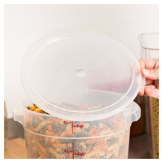 Крышка для контейнера Cambro RFSC6PP-190 предназначена для совместного использования с контейнером для хранения продуктов на 5,7 л и 7,6 л в качестве кухонных принадлежностей для транспортировки и хранения продуктов питания на предприятиях общественного питания и торговли, барах, ресторанах, отелях, гостиницах и в домашних условиях. Изделие изготовлено из высококачественного полипропилена, соответствующего стандартам безопасности для пищевой промышленности. Полипропилен обладает высокой прочностью, легкостью (изделия легче металлических и керамических аналогов, что упрощает использование), безопасностью, эстетичным видом и универсальностью. Особенности: