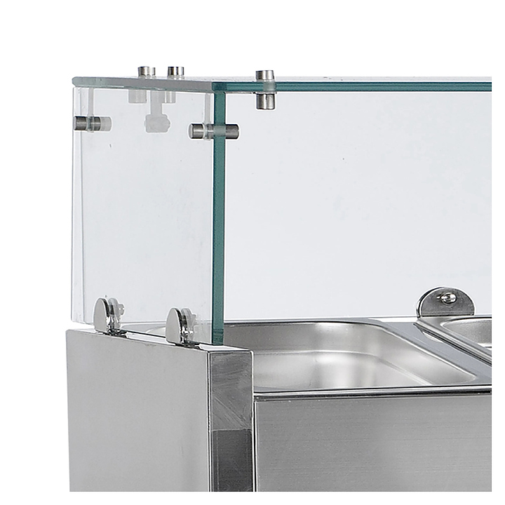 Настольная холодильная витрина TEFCOLD GVC33-180 серии G-Line используется в кафе, барах и на других предприятиях общественного питания и торговли для хранения ингредиентов для приготовления блюд. Модель оснащена встроенным компрессорным агрегатом и электронным блоком управления. Корпус и внутренняя облицовка выполнены из высококачественной нержавеющей стали марки SS201, купол – из высокопрочного стекла. Гастроемкости не входят в комплект поставки и приобретаются отдельно. Комплектация: