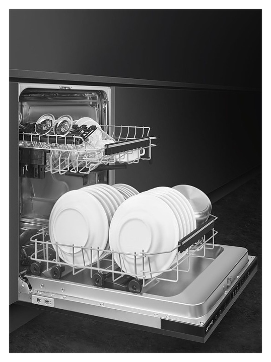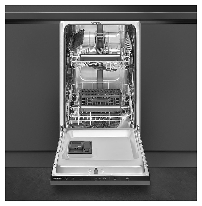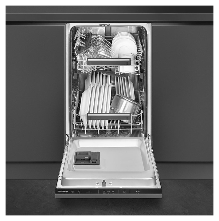 Встраиваемая посудомоечная машина Smeg ST4522DIN используется в загородном доме или квартире для мойки бокалов, чашек, тарелок, сковородок, кастрюль и столовых приборов. Модель оснащена сенсорным управлением. Внутренняя камера и фильтр выполнены из нержавеющей стали. Особенности: