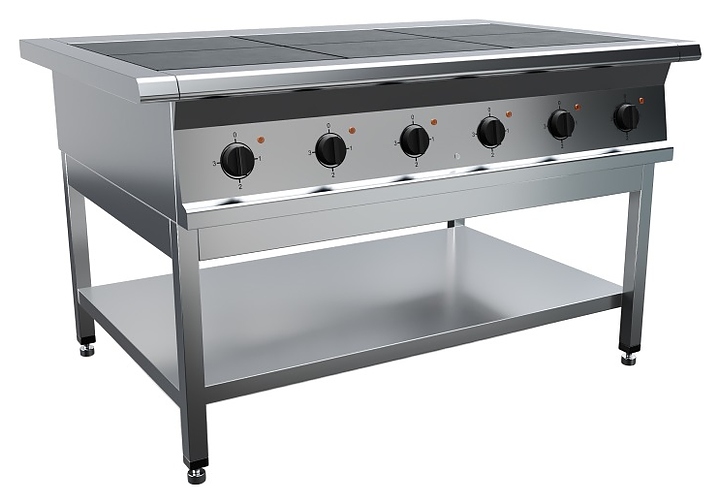 Напольная электрическая плита Rada P9Q6/S используется на предприятиях общественного питания и торговли для приготовления широкого ассортимента блюд в наплитной посуде. Модель оснащена 6 прямоугольными конфорками и электромеханической панелью управления. Корпус и лицевая панель выполнены из нержавеющей стали марки AISI430, конфорки – из чугуна. Стенд поставляется в разобранном виде. Особенности: