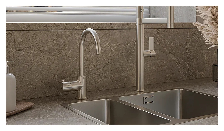 Система мгновенного кипячения воды ArtisanTech 2 в 1 AquaHot 3300 - инновационный кухонный смеситель с бойлером используется для кипячения и фильтрации воды в загородных домах и квартирах. Благодаря бойлеру нагрева, горячая вода появляется сразу после нажатия кнопки, а система очистки удаляет примеси и загрязнения, обеспечивая кристально чистую воду. Модель оснашена интуитивно понятным управлением. Смеситель изготовлен из высококачественной латуни. Комплект поставки: