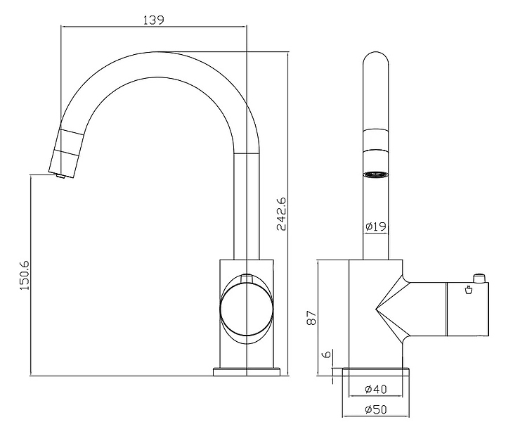 Высота излива 242.6 мм