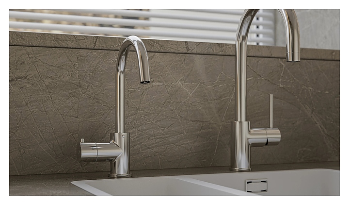 • Изоляция излива сохраняет его прохладным на ощупь при подаче кипятка