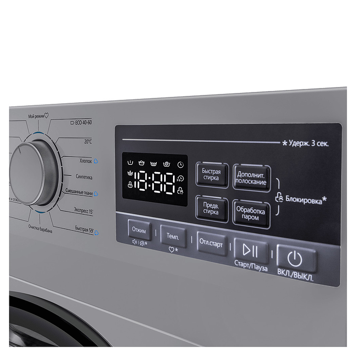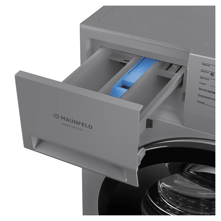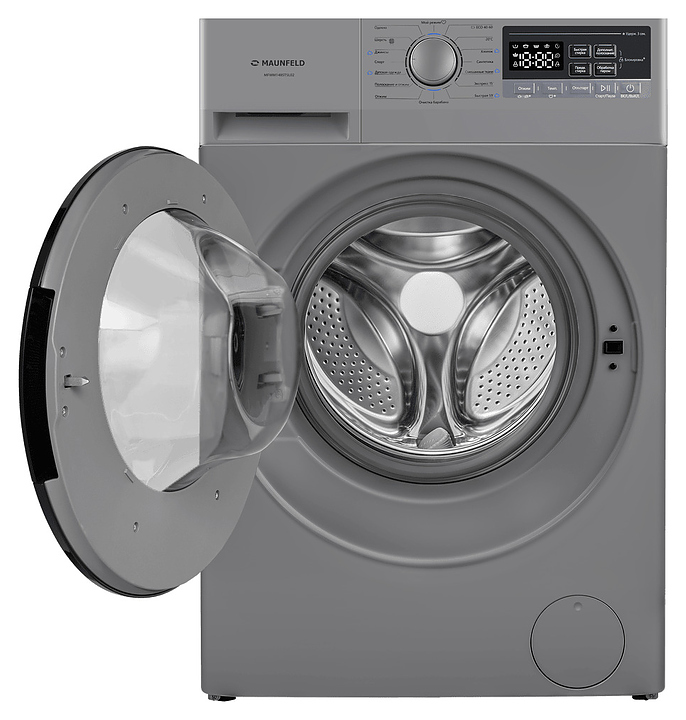Автоматическая стиральная машина Maunfeld MFWM148STSL02 используется в домашних условиях, а также небольших прачечных для стирки, полоскания и отжима белья, одежды и тканей. Модель оснащена фронтальным загрузочным люком с левосторонней дверью со смотровым окном, съемным контейнером для моющих средств с 3 отсеками, кабелем питания с вилкой, электромеханической панелью управления с поворотным переключателем программ, нажимными функциональными клавишами, светодиодными сигнальными лампами и цифровым дисплеем с белой подсветкой индикации. Корпус выполнен из металла с антикоррозийным покрытием цвета нержавеющей стали, крышка двери люка с прозрачным остеклением и широкой черной окантовкой, барабан – из высококачественной нержавеющей стали, панель управления с поверхностью в комбинации черного и серого тонов.