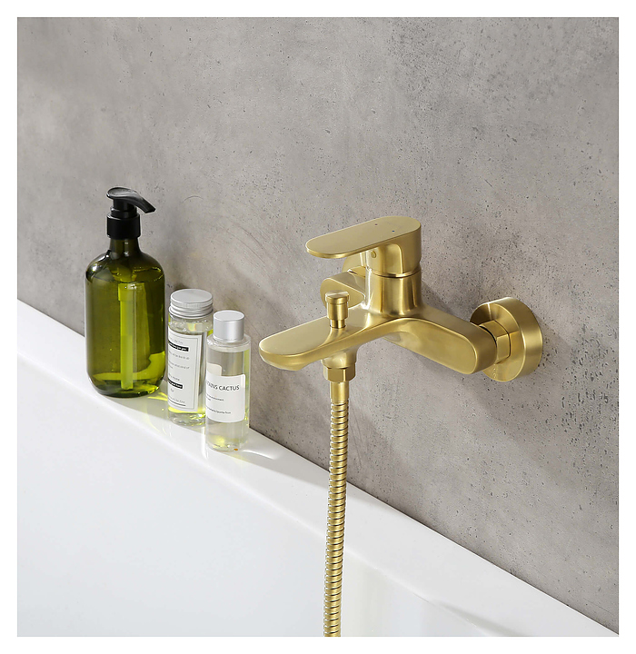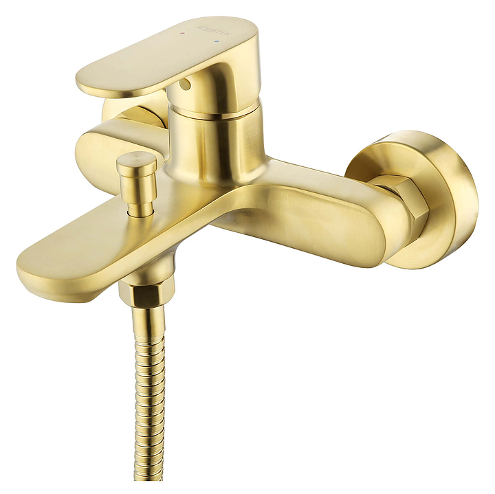 Смеситель для ванны с душем Aquatek Альфа AQ1940BG предназначен для подачи горячей и холодной воды в ванных помещениях. Керамический картридж Sedal обеспечивает плавный ход рычага смесителя, контроль и точность при выборе напора и температуры воды. Цельный корпус смесителя снижает вероятность протечек. Модель оснащена вытяжным дивертором и встроенным аэратором Neoperl, который экономит воду, насыщает ее воздухом и создает мягкую струю без брызг. Изделие выполнено из высококачественной латуни, отличающейся прочностью, долговечностью и устойчивостью к перепадам температур. В комплект поставки входят S-образные эксцентрики и декоративные отражатели. Душевой гарнитур в комплект поставки не входит. Дополнительные характеристики: