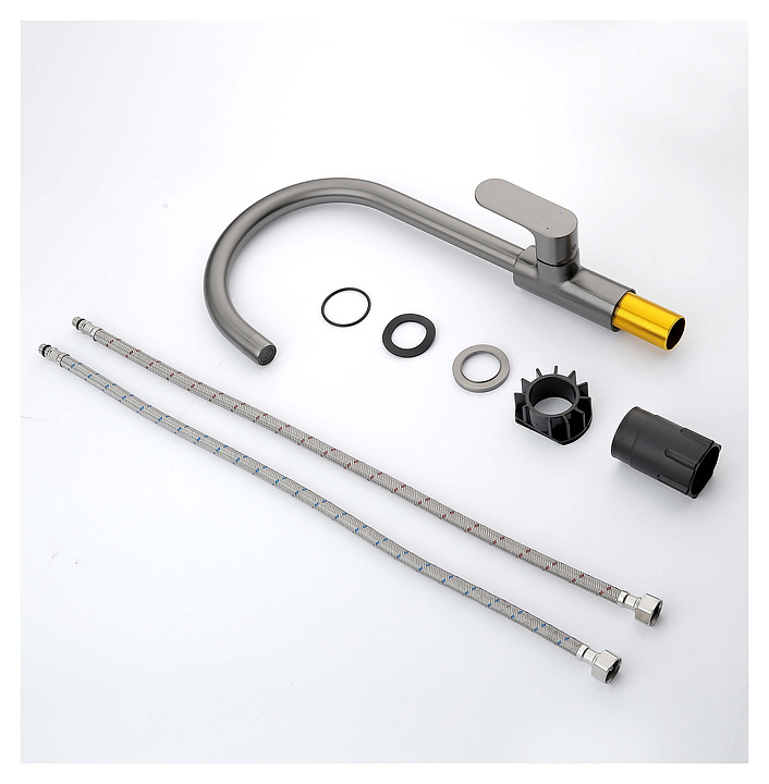 Смеситель Aquatek AQ1982BGM предназначен для подачи горячей и холодной воды в кухонных помещениях. Модель оснащена однорычажной системой регулировки силы струи и температуры воды. Керамический картридж Citec обеспечивает контроль и точность при выборе напора и температуры воды. Цельный корпус смесителя снижает вероятность протечек. Изделие выполнено из цинкового сплава и нержавеющей стали. В комплект поставки входят гибкая подводка и монтажный набор. Дополнительные характеристики: