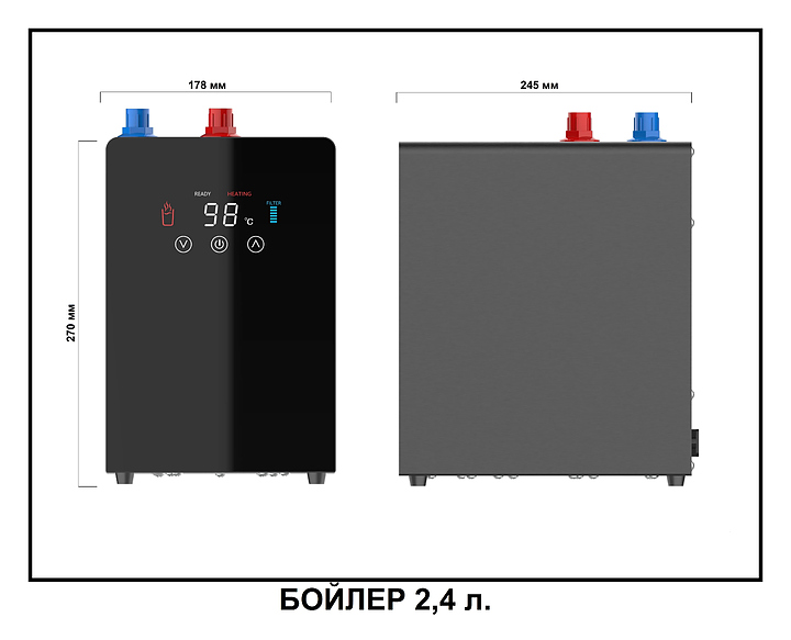 Система мгновенного кипячения воды ArtisanTech 4 в 1 Aquahot Milan - инновационный кухонный смеситель с бойлером используется для получения кипятка, горячей, холодной и фильтрованной воды в загородных домах и квартирах. Система нагрева и фильтрации, располагается под раковиной и включает в себя: изолированный резервуар, обеспечивающий мгновенный доступ к кипящей воде, прямое подключение к водопроводу для холодной, горячей и фильтрованной воды, интегрированные фильтры, очищающие воду от примесей и простую систему переключения между режимами. Модель оснашена интуитивно понятным управлением. Смеситель изготовлен из высококачественной латуни. Комплект поставки: