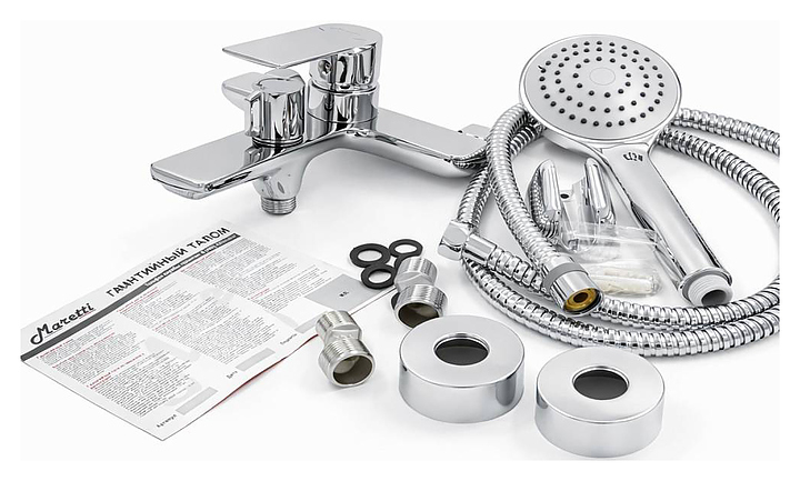 Смеситель для ванны с душем Maretti Ritta RI22RF505 предназначен для подачи горячей и холодной воды в ванных помещениях. Керамический картридж обеспечивает плавный ход рычага смесителя, контроль и точность при выборе напора и температуры воды. Модель оснащена 3-режимной душевой лейкой и встроенным аэратором, который экономит воду, насыщает ее воздухом и создает мягкую струю без брызг. Изделие выполнено из высококачественной латуни, отличающейся прочностью, долговечностью и устойчивостью к перепадам температур, лейка - из ABS пластика, шланг - в двойной металлической оплетке. В комплект поставки входят смеситель, эксцентрики, декоративные чашки, лейка, шланг и держатель лейки. Особенности: