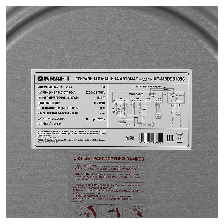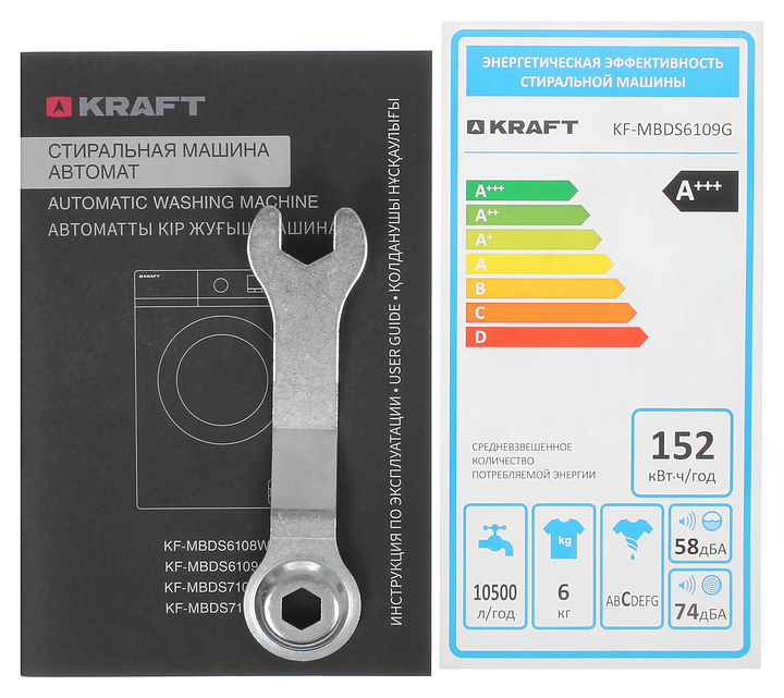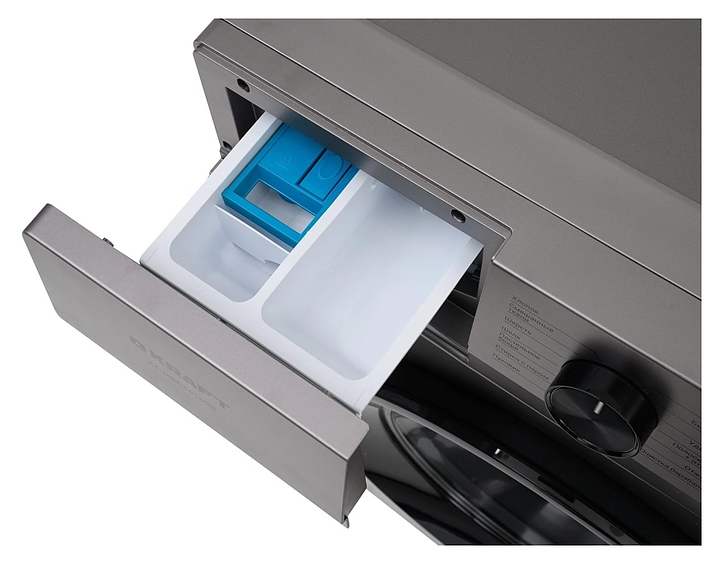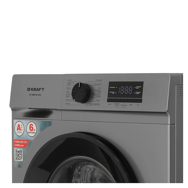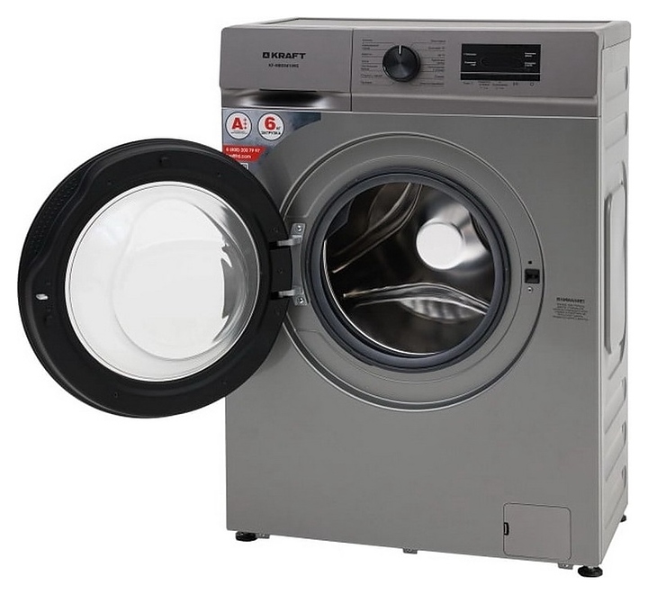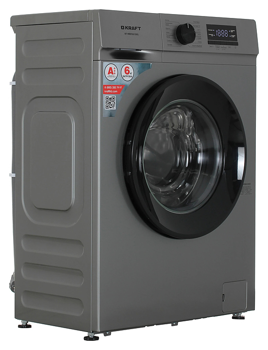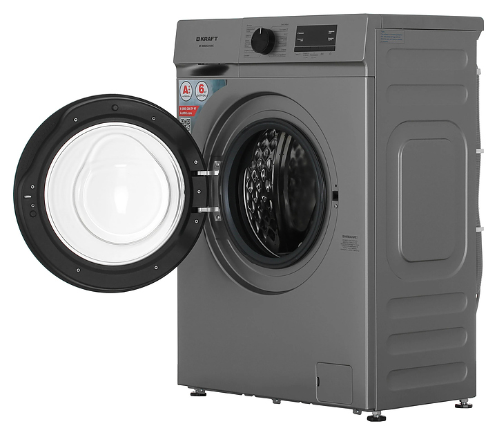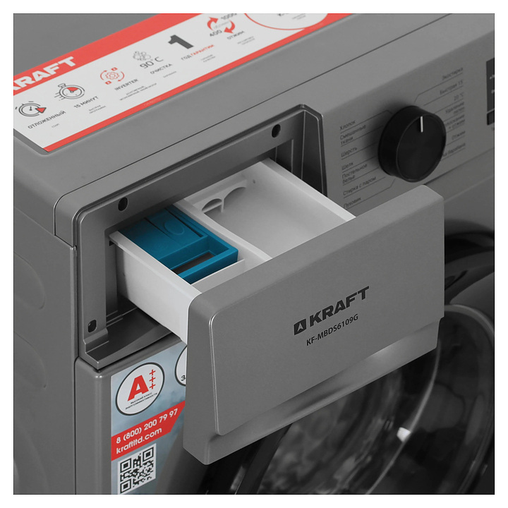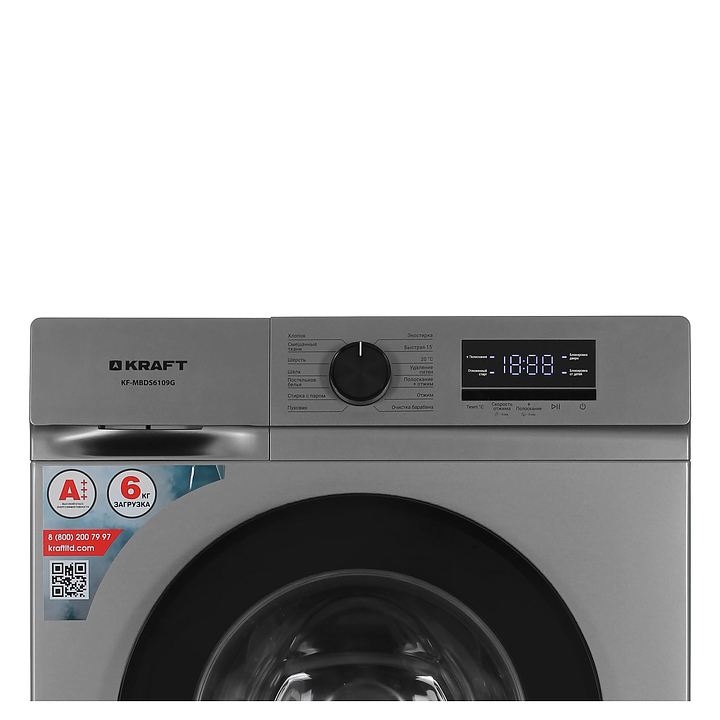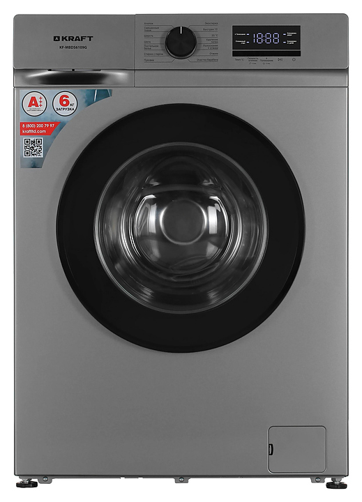 Автоматическая стиральная машина Kraft KF-MBDS6109G используется в домашних условиях, а также небольших прачечных для стирки, полоскания и отжима белья, одежды и тканей. Модель оснащена фронтальным загрузочным люком с левосторонней дверью со смотровым окном, съемным контейнером для моющих средств с 3 отсеками, кабелем питания с вилкой, электромеханической панелью управления с поворотным переключателем программ, нажимными функциональными клавишами, светодиодными сигнальными лампами и цифровым дисплеем с голубой подсветкой индикации. Корпус выполнен из металла с антикоррозийным покрытием серого оттенка, крышка двери люка – из пластика с черной поверхностью и остеклением из прозрачного толстостенного стекла, барабан – из высококачественной нержавеющей стали, панель управления и переключатель черного цвета.