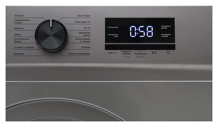 Цифровая индикация оставшегося до начала или завершения цикла времени и других параметров, светодиодные индикаторы активных функций