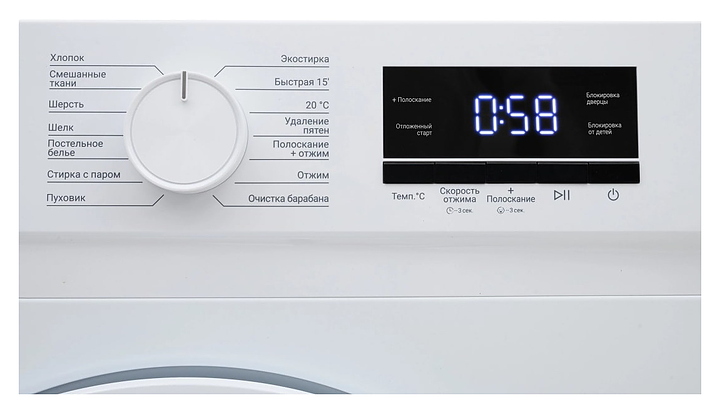 Цифровая индикация оставшегося до начала или завершения цикла времени и других параметров, светодиодные индикаторы активных функций
