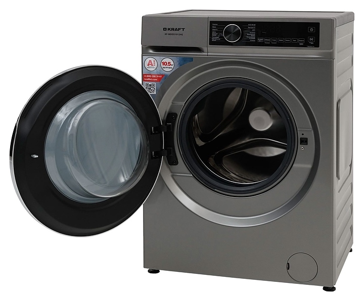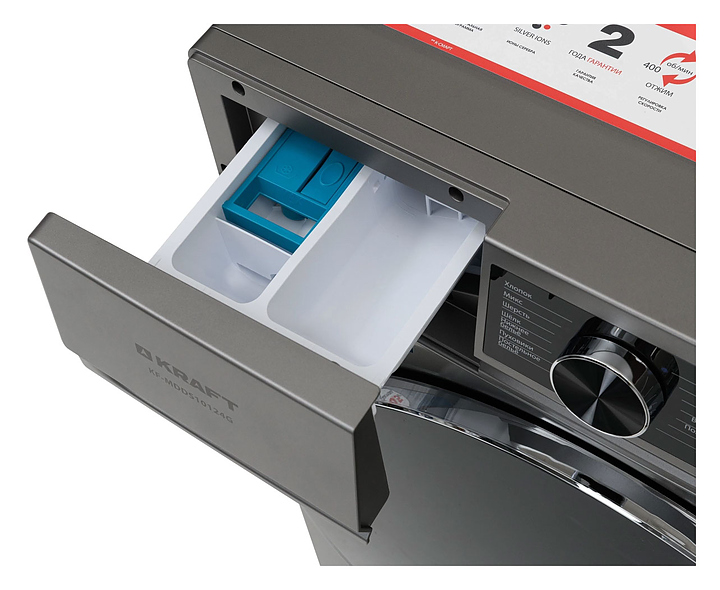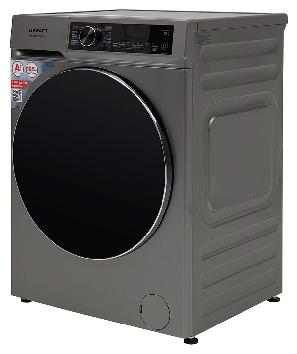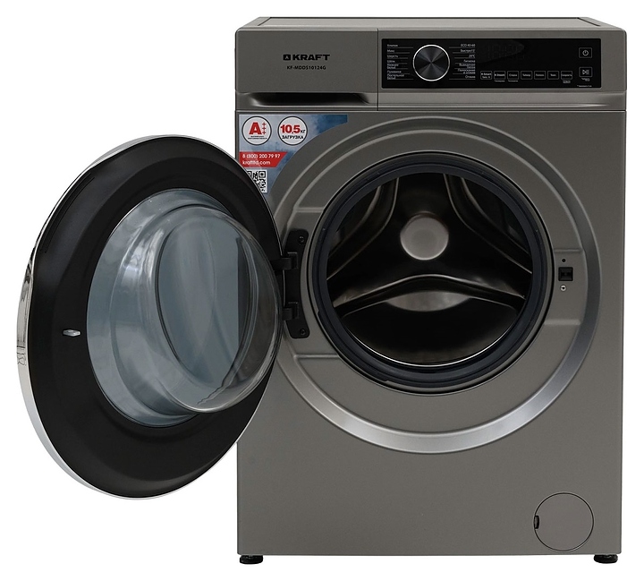 Автоматическая стиральная машина Kraft KF-MDDS10124G используется в домашних условиях, а также небольших прачечных для стирки, полоскания и отжима белья, одежды и тканей. Модель оснащена фронтальным загрузочным люком с левосторонней дверью со смотровым окном, съемным контейнером для моющих средств с 3 отсеками, кабелем питания с вилкой, электромеханической панелью управления с поворотным переключателем программ, сенсорными функциональными клавишами, светодиодными сигнальными лампами и цифровым дисплеем с голубой подсветкой индикации. Корпус выполнен из металла с антикоррозийным покрытием серого оттенка, крышка двери люка – из пластика с остеклением из прозрачного толстостенного стекла, внешняя крышка двери люка – из стекла с полупрозрачной дымчатой тонировкой и серебристой окантовкой, барабан – из высококачественной нержавеющей стали, панель управления и переключатель черного цвета.