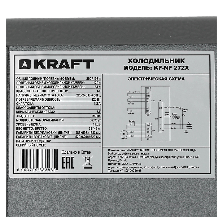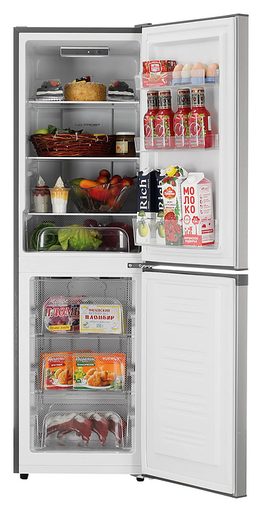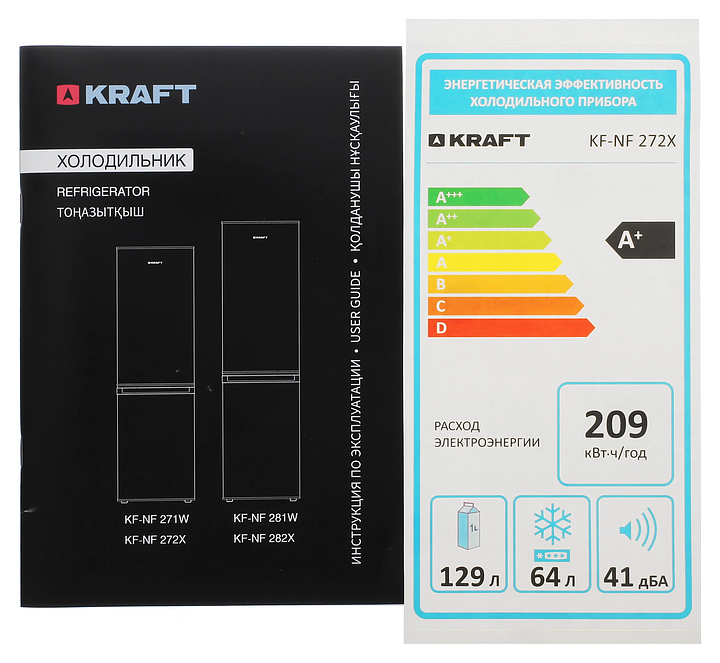 Холодильник Kraft KF-NF272X предназначен для охлаждения, заморозки, кратковременного и длительного хранения пищевых продуктов и напитков в домашних условиях. Модель оснащена холодильной камерой сверху и морозильной камерой снизу с правосторонними перенавешиваемыми распашными дверьми, кабелем питания с евровилкой и расположенной внутри холодильной камеры электромеханической панелью управления. Фасады дверей и боковины выполнены из металла с антикоррозийным покрытием цвета нержавеющей стали, внутренняя облицовка камер – из белого пластика, плоские полки – из прозрачного безопасного закаленного стекла с окантовкой из белого пластика, ящики и навесные полки – из прозрачного полимера, упаковка – из гофрокартона, полимерной пленки и полистирола.