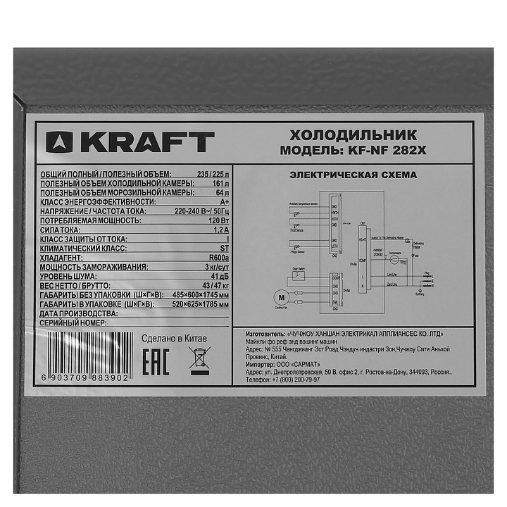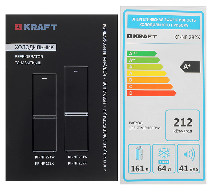 Холодильник Kraft KF-NF282X предназначен для охлаждения, заморозки, кратковременного и длительного хранения пищевых продуктов и напитков в домашних условиях. Модель оснащена холодильной камерой сверху и морозильной камерой снизу с правосторонними перенавешиваемыми распашными дверьми, кабелем питания с евровилкой и расположенной внутри холодильной камеры электромеханической панелью управления. Фасады дверей и боковины выполнены из металла с антикоррозийным покрытием цвета нержавеющей стали, внутренняя облицовка камер – из белого пластика, плоские полки – из прозрачного безопасного закаленного стекла с окантовкой из белого пластика, ящики и навесные полки – из прозрачного полимера, упаковка – из гофрокартона, полимерной пленки и полистирола.