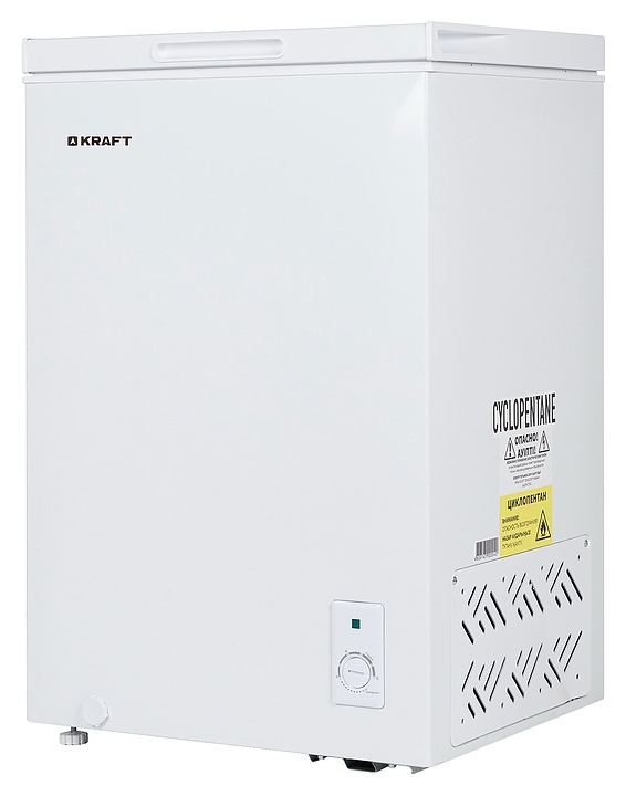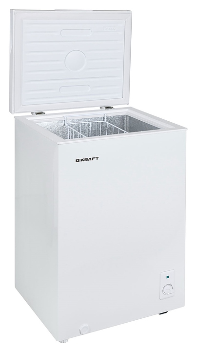 Морозильно-холодильный ларь Kraft BD (W)-100RX предназначен для охлаждения, замораживания, кратковременного и длительного хранения пищевых продуктов таких как мясо, полуфабрикаты, овощи и мороженое в гостиничных комплексах и домашних условиях. Модель оснащена вертикально ориентированной рабочей камерой с откидной глухой дверью сверху, кабелем питания с вилкой и расположенной в нижней части фронтальной стенки электромеханической панелью управления. Корпус выполнен из металла с антикоррозийным покрытием белого цвета, внутренняя облицовка камеры – из пластика с текстурной поверхностью легкой очистки серебристого оттенка, корзина – из металлического прутка с антикоррозийным покрытием белого цвета.