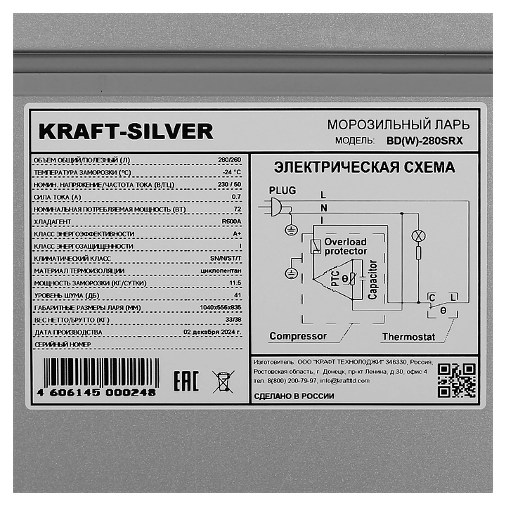 Ларь морозильно-холодильный Kraft BD (W)-280SRX серебристый