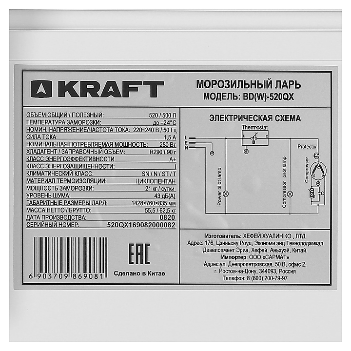 Ларь морозильно-холодильный Kraft BD (W) 520 QX белый