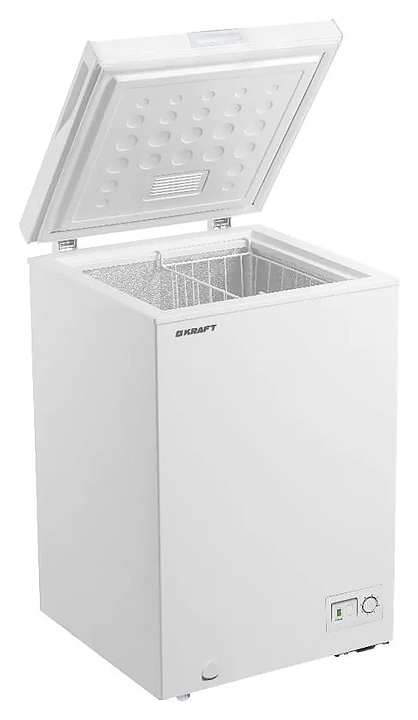 Морозильный ларь Kraft BD (W)-135QX предназначен для охлаждения, замораживания, кратковременного и длительного хранения пищевых продуктов таких как мясо, полуфабрикаты, овощи и мороженое в гостиничных комплексах и домашних условиях. Модель оснащена вертикально ориентированной рабочей камерой с откидной глухой дверью сверху, кабелем питания с вилкой и расположенной в нижней части фронтальной стенки электромеханической панелью управления. Корпус выполнен из металла с антикоррозийным покрытием белого цвета, внутренняя облицовка камеры – из пластика с текстурной поверхностью легкой очистки серебристого оттенка, корзина – из металлического прутка с антикоррозийным покрытием белого цвета. Комплектация: