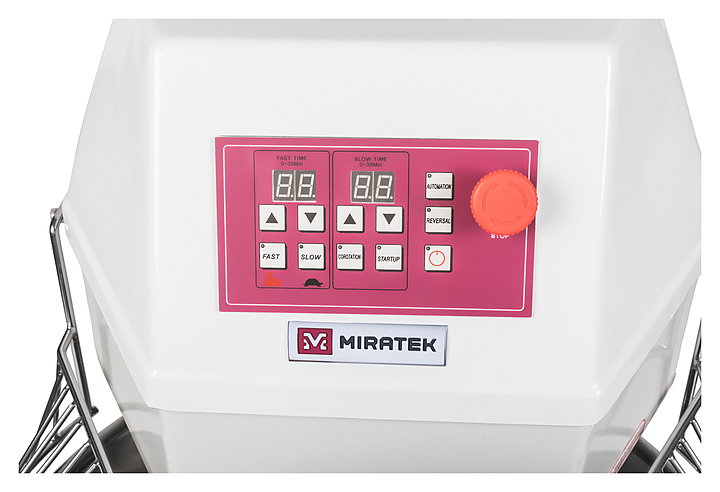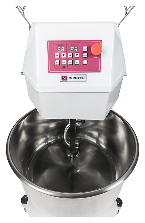 Спиральный тестомес Miratek PX-100 используется в пекарнях, кондитерских, на предприятиях общественного питания и торговли для замешивания теста с различной основой и консистенцией для выпечки большого ассортимента хлебобулочной продукции из пшеничного, ржаного и ржано-пшеничного теста. Особенности: