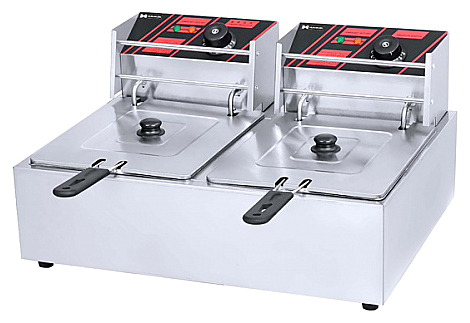 Фритюрница Hurakan HKN-FR66L предназначена для приготовления широкого спектра блюд в большом объеме разогретого до определенной температуры масла или жира на предприятиях общественного питания и торговли. Модель оснащена электромеханической системой управления, регулировкой температуры и холодной зоной. Корпус выполнен из нержавеющей стали. В комплект поставки входят 2 корзины с крышками и 2 вилки. Особенности: