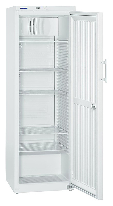 Холодильный шкаф Liebherr FKv 4140 предназначен для охлаждения и кратковременного хранения скоропортящихся продуктов и напитков на предприятиях общественного питания и торговли. Модель оснащена механическим управлением и цифровой индикацией температуры. Внутренняя прокладка выполнена из белого пластика, корпус и дверь - из стали, покрытие решеток - из пластика, ножки - из оцинкованной стали. Особенности: