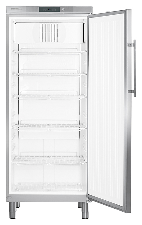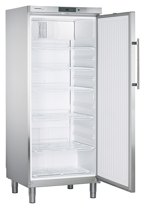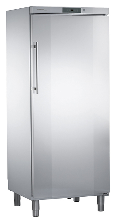 Холодильный шкаф Liebherr GKv 5790 предназначен для охлаждения и кратковременного хранения скоропортящихся продуктов и напитков на предприятиях общественного питания и торговли. Модель оснащена электронным управлением и цифровой индикацией температуры. Внутренняя прокладка выполнена из белого полистирола, корпус и дверь - из нержавеющей стали, покрытие решеток - из пластика. Особенности: