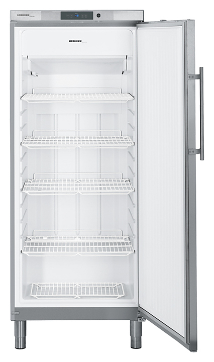 Морозильный шкаф Liebherr GGv 5060 предназначен для заморозки, охлаждения и длительного хранения продуктов и полуфабрикатов на предприятиях общественного питания и торговли. Модель оснащена сенсорным управлением и цифровой индикацией температуры. Внутренняя прокладка выполнена из белого полистирола, корпус и дверь - из нержавеющей стали, покрытие решеток - из пластика. Особенности: