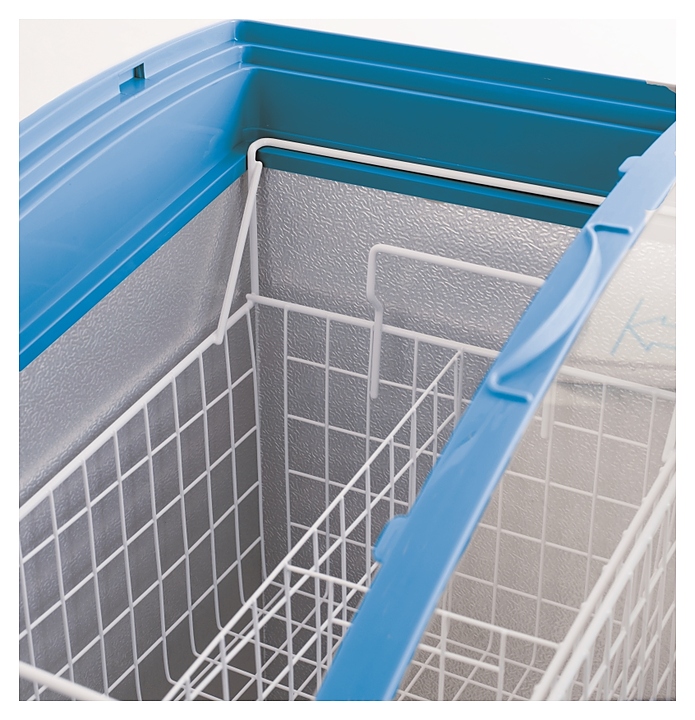Морозильный ларь Scan SD 400 предназначен для хранения и продажи различных продуктов в замороженном виде, например, мороженого или полуфабрикатов, а также для демонстрации товара покупателю. Ларь вмещает в себя три корзины, доступ к которым ограничивается замком, поставляемым в комплекте. Две раздвижные крышки из гнутого стекла обеспечивают лучший обзор и наиболее удобный доступ к товарам. Возможность брендирования и оснащения ларя подсветкой позволяет повысить интерес покупателей к предлагаемым товарам, тем самым увеличив доходы владельца оборудования. Колёса диаметром 75 мм позволяют легко передвигать ларь в случае необходимости. Опции: