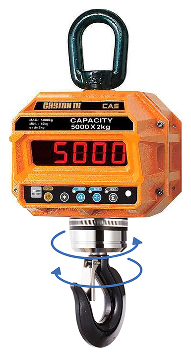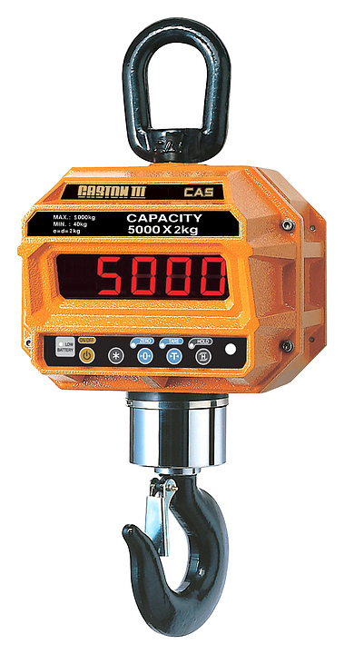 Крановые весы CAS Caston-III 10 THD используются на любых типах подъемных устройств в складской, текстильной, металлургической и других отраслях промышленности для статического взвешивания грузов. Модель оснащена светодиодным дисплеем и тензометрическим типом измерения. Комплектация: