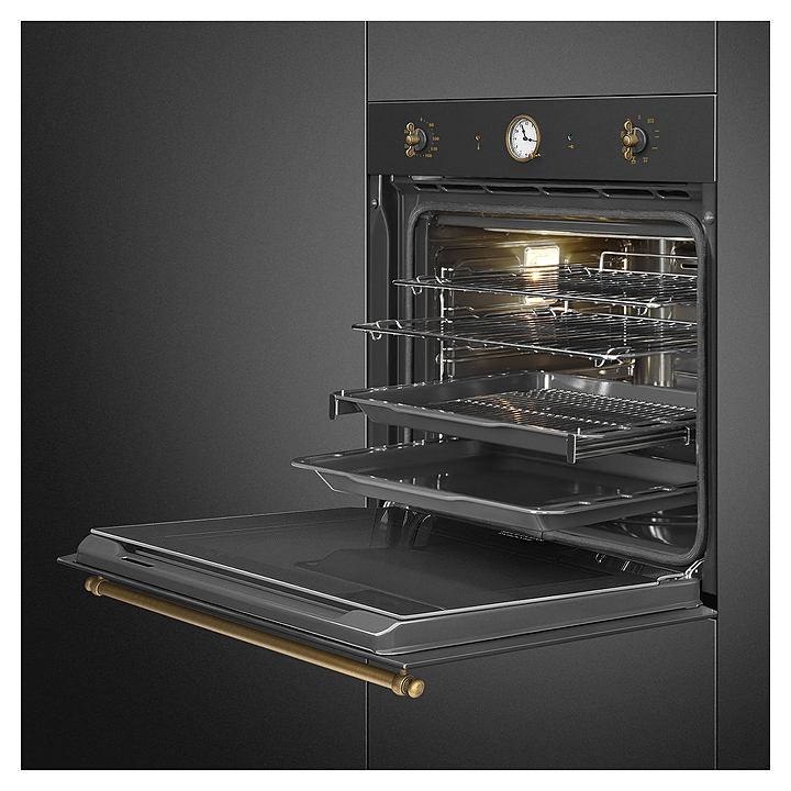 Духовые шкафы Smeg SFP805АО идеально сочетаются с варочными поверхностями и создают единый образ, становясь центральными предметами на любой кухне. Одновременное приготовление различных блюд на разных уровнях — многофункциональные духовые шкафы позволяют приготовить полное меню одновременно, без ущерба для вкуса приготавливаемых блюд, что существенно сэкономит ваше время. Использование цвета и нержавеющей стали в духовых шкафах серии Coloniale оживляет их и придает особую утонченность и элегантность, неподвластную времени. Эстетика и управление: