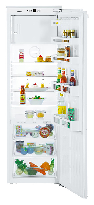 Встраиваемый холодильник Liebherr IKB 3524 класса Comfort предназначен для заморозки, охлаждения и длительного хранения продуктов и полуфабрикатов в частных домах, квартирах, отелях и офисах. Модель оснащена кнопочным управлением, жидкокристаллическим дисплеем MagicEye и цифровой индикацией температуры. Полки выполнены из стекла. Холодильная камера: