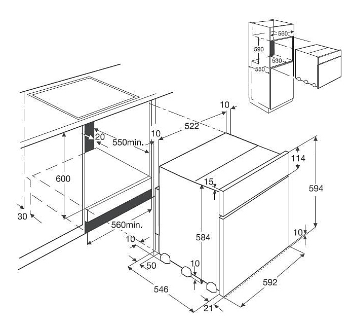 Независимый мультифункциональный духовой шкаф с функцией приготовления на пару