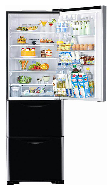 Холодильник Hitachi R-SG 37 BPU GBK используется для длительного хранения продуктов, их охлаждения и заморозки, а также для приготовления льда. Оборудование состоит из отделений: холодильного, морозильного и овощного. Особенности холодильного отделения: