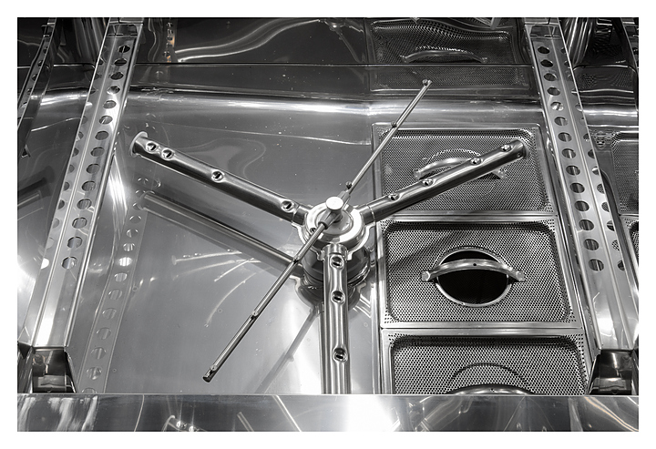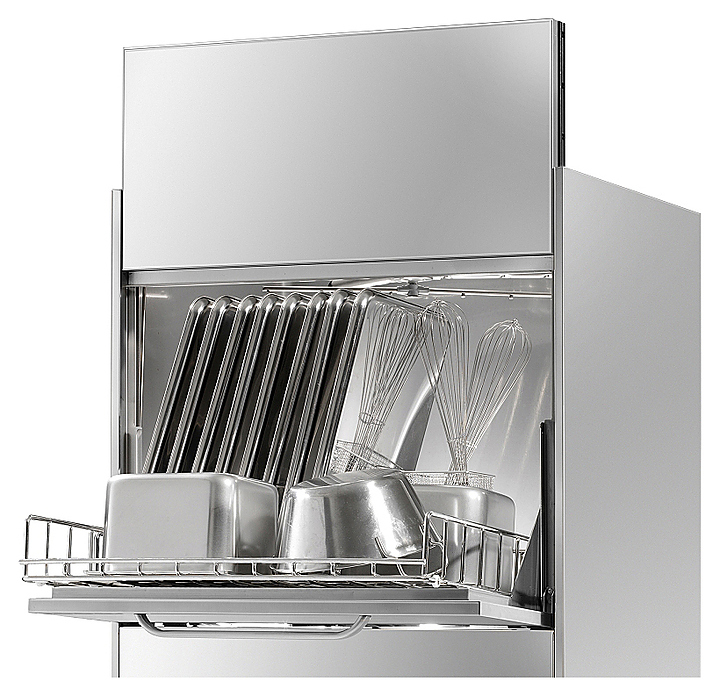 Купольная посудомоечная машина Kromo KP 302 E PLUS предназначена для качественной очистки тарелок, кухонных принадлежностей, столовых приборов, стаканов и бокалов на предприятиях общественного питания. Корпус, бак, моечные и ополаскивающие рукава выполнены из нержавеющей стали. Особенности: