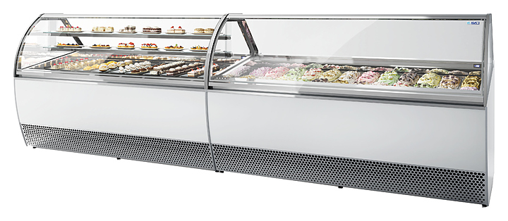 Витрина для мороженого ISA Millennium LX 120 используется на предприятиях общественного питания и торговли для демонстрации и хранения мороженого, сорбета и йогурт-мороженого. Наклонное расположение зоны выкладки обеспечивает отличную видимость продукта. Каркас изготовлен из углеродистой стали, окрашенной порошковой краской. Дно зоны выкладки и рабочая поверхность - из полированной нержавеющей стали, задняя панель - из пластифицированной стали, внешняя база - из крашеной. Цельный корпус имеет изоляцию из пенополиуретана, вспененного углекислотой, без использования озоноразрушающих веществ. Особенности: