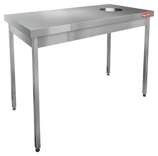 Производственный стол HICOLD НДСО-14/6 предназначен для сбора отходов и обработки ингредиентов для приготовления блюд, а также может использоваться в качестве дополнительного места для установки кухонных приборов на предприятиях пищевой промышленности, общественного питания и торговли, в пекарнях и кондитерских. У пристенных моделей отступ от стены до задних опорных ножек увеличен до 70 мм, что позволяет придвинуть оборудование вплотную к стене, даже если вдоль стены проведены такие инженерные коммуникации, как вода, сливные трубы и кабель каналы. Столешница выполнена из нержавеющей стали толщиной 0,8 мм, усилена листом ДСП, опорные ножки - из трубы 40х40 мм из нержавеющей стали.