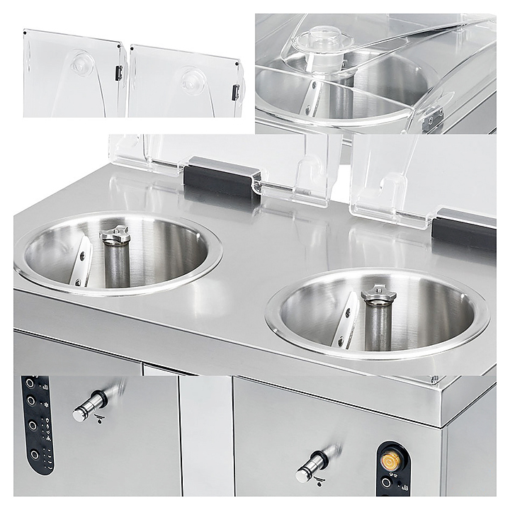 Фризер для мороженого Nemox Gelato 5+5K Crea Twin используется в барах, кафе, на открытых летних площадках, в специальных отделах супермаркетов и торговых центрах для приготовления мороженого кремообразной текстуры, сорбета, гранита и других холодных десертов. Модель оснащена мощным электрическим асинхронным двигателем. Корпус и лопасти выполнены из нержавеющей стали, емкость - из нержавеющей стали ANSI 304. В комплект поставки входят 2 лопатки, 2 набора съемных насадок для лопастей и ершик для чистки сливной трубки. Особенности: