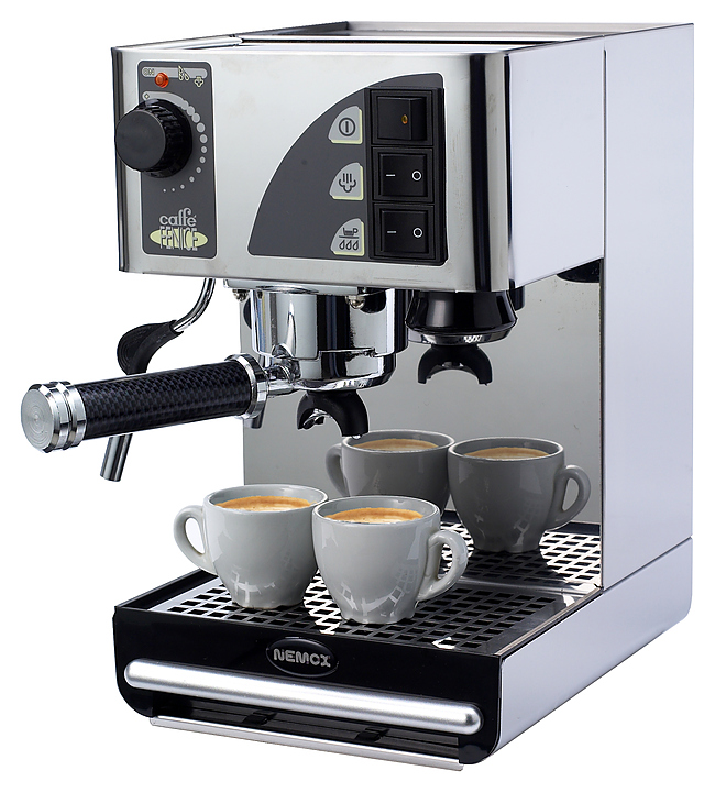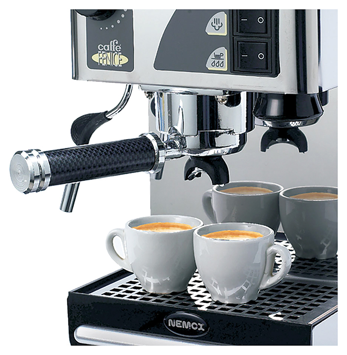 Кофемашина Nemox Caffe FENICE используется в барах, кафе, на открытых летних площадках, в специальных отделах супермаркетов и торговых центрах для приготовления эспрессо, капучино и других горячих напитков. Модель оснащена полкой для чашек с подогревом, встроенным темпером и поддоном для сбора капель. Корпус и нагревательный элемент выполнены из нержавеющей стали, бойлер, фильтродержатель и внутренние трубки - из латуни. Особенности: