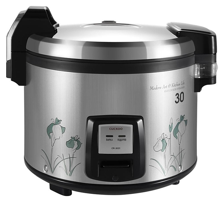 Рисоварка Cuckoo CR-3021 используется на предприятиях общественного питания и торговли для приготовления, хранения и поддержания в разогретом виде всех видов круп и рис для суши. Модель оснащена механической панелью управления. Функция подогрева позволяет использовать рисоварку в качестве термоса. В комплект поставки входят ложка, силиконовая прокладка и руководство по эксплуатации. Особенности: