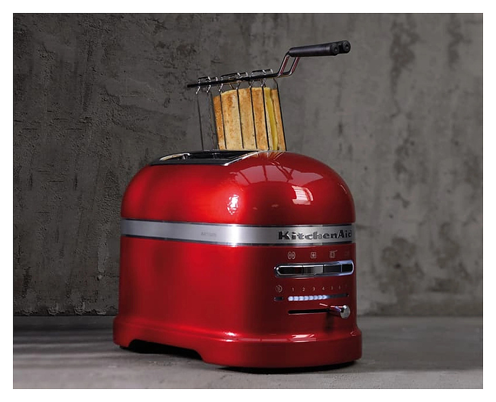 Тостер KitchenAid Artisan 5KMT2204EOB предназначен для поджаривания кусочков хлеба, размораживания и приготовления замороженных тостов, сэндвичей, бейглов и булочек. Модель оснащена панелью управления с подсветкой кнопок голубым цветом и выдвижным поддоном для крошек. Корпус выполнен из литого алюминия. Особенности: