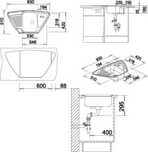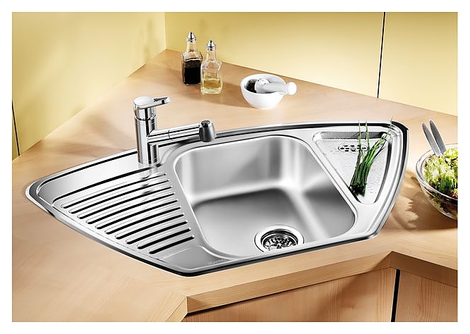 Мойка Blanco TIPO 9 E предназначена для рационального планирования рабочего места на кухне. При необходимости она может монтироваться как в угловой, так и в обычный шкаф, что позволяет ее использовать практически в любом кухонном пространстве. По обе стороны от объемной и вместительной чаши, расположенной по центру, размещены два компактных крыла. Корзинчатый вентиль, расположенный в сливном отверстии, выполняет функцию фильтра. Чаша имеет закругленные углы для облегчения процесса очищения от загрязнений. Мойка изготовлена из нержавеющей стали. В комплект поставки входит отводная арматура с корзинчатым вентилем 3 ½". Особенности: