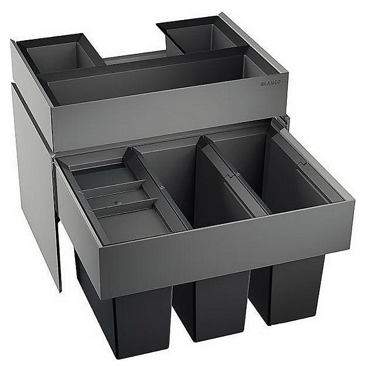 Система сортировки отходов Blanco Select 60/3 Orga дополняет мусорную систему, позволяя оптимально использовать пространство. Особенности: