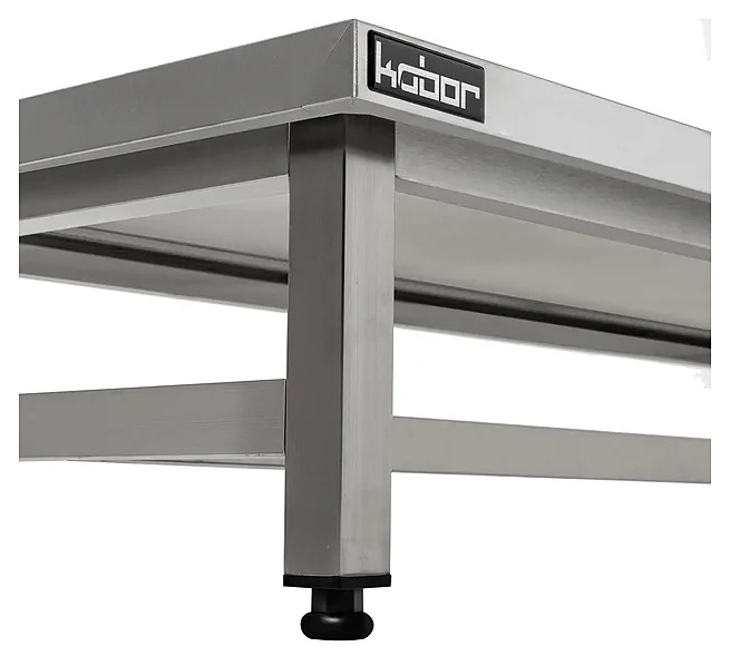 Подтоварник Кобор ПТП-100/50 служит для временного складирования кухонного инвентаря и продуктов питания. Столешница выполнена из нержавеющей стали aisi 430 с усилением ОСП, каркас из нержавеющей квадратной трубы 40х40 мм. Ножки регулируются по высоте, позволяя избежать наклона рабочей поверхности. Изделие доставляется в разобранном виде для облегчения транспортировки.